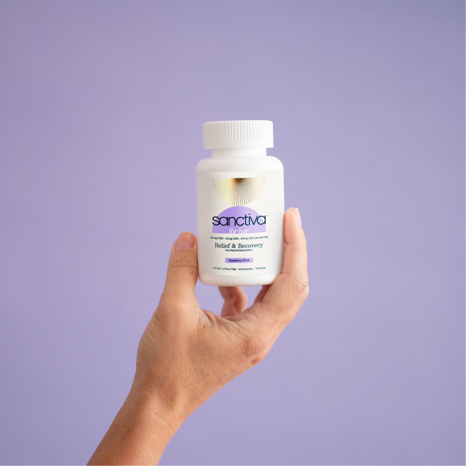 Sanctiva is a specially formulated gummy designed to help alleviate period discomfort. It contains a blend of cannabinoids (CBD, CBG, CBC) and other natural ingredients to support your body during your menstrual cycle.